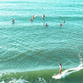Surfers Riding the Ocean Waves by Oceanic SkyView